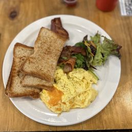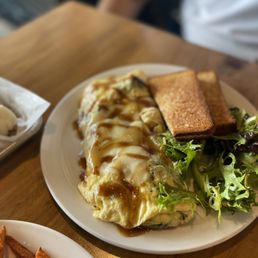A cute brunch spot to try out. Upon arrival we did not know that we needed to sign in using the QR code outside (I overlooked the sign) so we went inside thinking they would assist us. It was quite busy (Father's Day) so we were not acknowledged or helped, we waited a while then figured to just go to the takeout side. The take out side was much better, as soon as we walked in we were greeted by the cashier. I applaud her customer service and attentiveness. The cashier was so patient and kind, not to mention she knew so much about the menu. We asked so many questions and she made awesome suggestions. Food was amazing, I love their French toast and pork belly omelette. The pork belly was so flavorful!! The only downfall was the price point, but in this economy I understand.